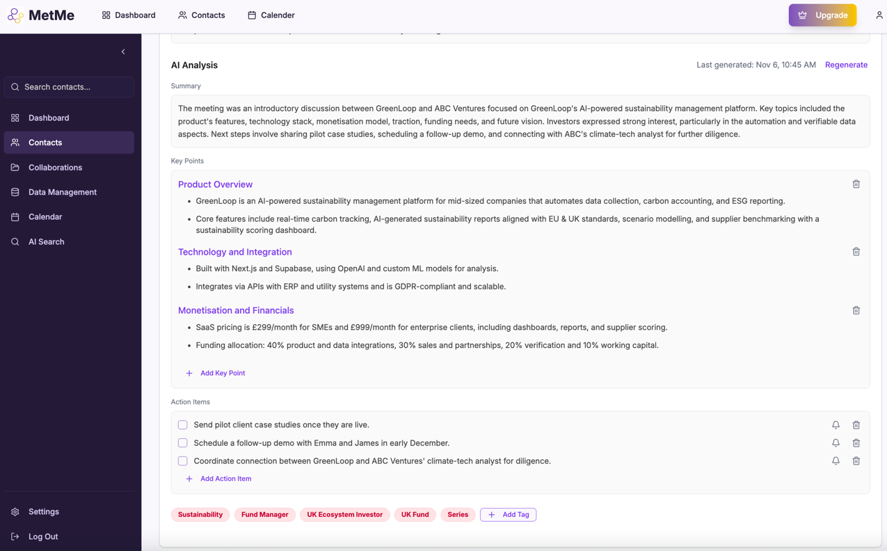 “I used to forget important details from my fundraising conversations. Now MetMe‘s AI helps me remember key points and follow-ups effortlessly.”